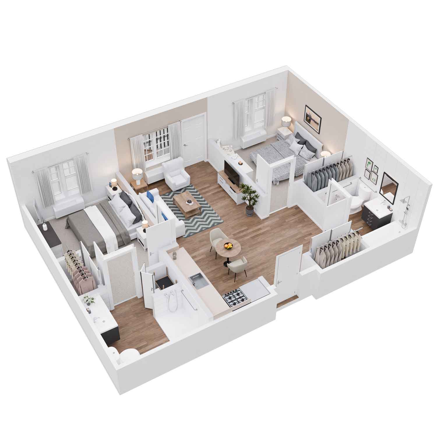 Our two-bedroom apartments feature generous space, modern design, and comfortable layouts, giving seniors the perfect balance of privacy, convenience, and style.